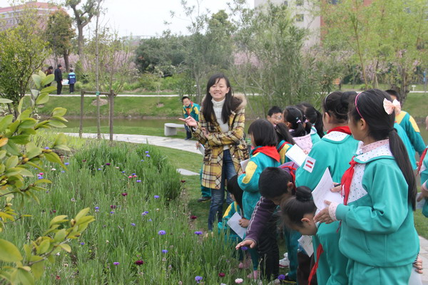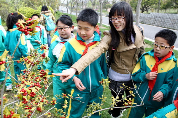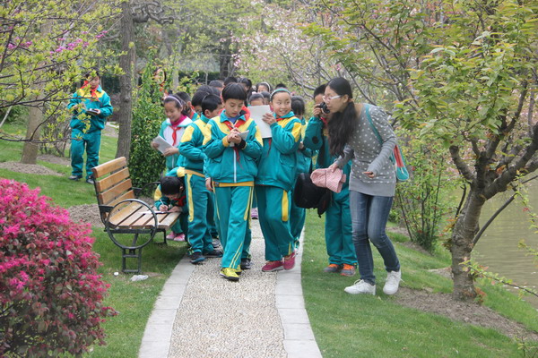 上海交大的园林植物标本园是一个小型的“植物王国”,其中木本植物资源800余种,草本植物400余种,以华东植物区系为主,兼顾收集了国内外其他地区观赏价值较高和适应性较强的植物。在这个“植物王国”里,阡陌交通,并因势利导设置了起伏有致的地形与收放自如的水体,俨然一幅美不胜收的自然和谐画卷。科学商店的志愿者们向小朋友介绍植物的名称以及辨认方法,还时不时讲一些关于该植物有趣的故事,小学生们在欢乐中增长了关于植物的知识。