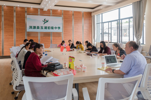 参与茈碧湖镇小学英语教师培训。为提升学生的英语整体水平,洱源县茈碧湖镇计划2018年起开展小学英语教学,需要一批能说会教的小学英语教师。实践团了解到实践地的需求,于7月24日至7月26日在洱源县茈碧湖镇中心学校的协调下,参与了当地英语教师的部分培训工作。实践团成员以小组为单位,从最基础的英文字母结合多媒体设备对乡村英语教师进行了音标教学,并为教师们提供了丰富的英语学习资料,助力当地小学英语教学的顺利开展。