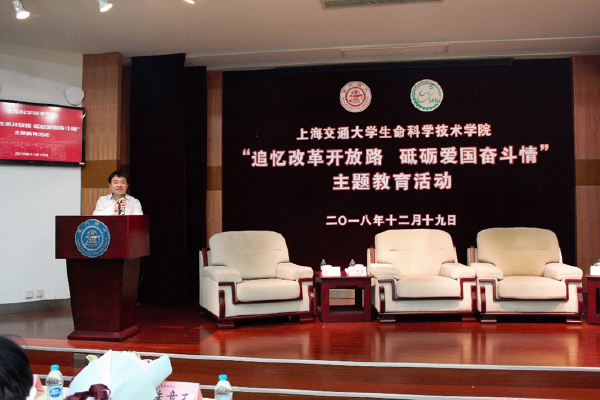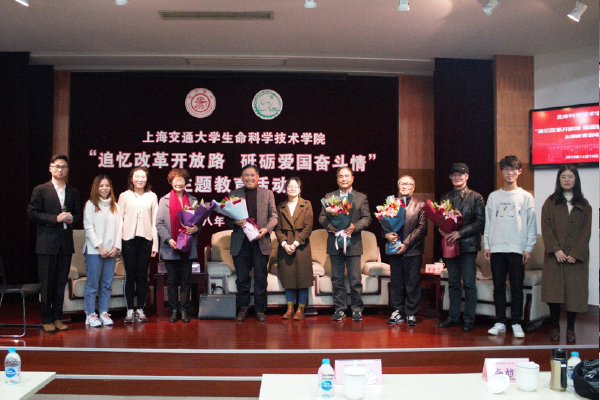 为了纪念改革开放四十周年,讲好中国故事、交大故事、生科故事,引导学生深刻认识改革开放40年来我国经济、社会发展取得的巨大成就,推动学生价值引领落细落小落实,2018年12月19日下午,437必赢国际官方网站邀请退休教工党支部朱章玉、罗九甫、李堃宝、陆秀英、许煜泉和潘建良老师,在生物药学楼树华多功能厅开展“追忆改革开放路,砥砺爱国奋斗情”主题教育活动。学院党委副书记李文纯、全体思政教师与学院入党积极分子、2018级新生共同参加活动。