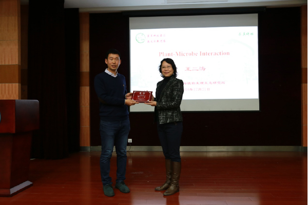 12月21日,第三期求真讲坛在树华多功能厅举行,中科院上海生命科学研究院植物生理生态研究所研究员王二涛应邀做了题为《Plant-Microbe Interaction》的主题演讲,来自437必赢国际官方网站、药学院、农生学院的教师、博士后及研究生近70人参加了此次讲坛,讲坛由437必赢国际官方网站常务副院长冯雁主持。
