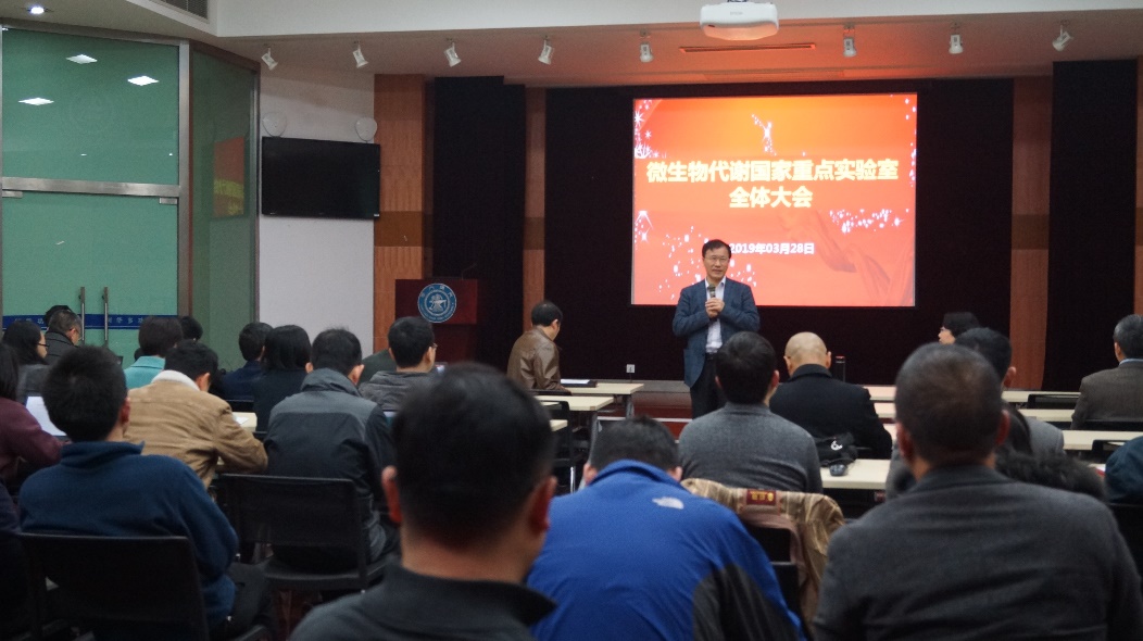 一年之计在于春,3月28日,微生物代谢国家重点实验室2019年度全体大会暨团队进展交流会在437必赢国际官方网站闵行校区顺利召开。实验室主任邓子新院士、副主任冯雁教授、张雪洪教授、许平教授、白林泉教授及实验室全体成员出席会议。