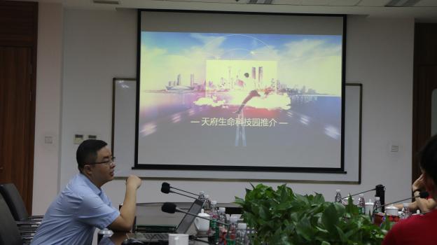 实践团走进天府生命科技园。园区管理有限公司副总经理万翔博士为大家介绍成都及成都高新区的总体情况,并为大家详细讲解天府生命科技园相关机制政策。通过走访参观,实践团成员对成都市生物行业发展有了较深入了解。