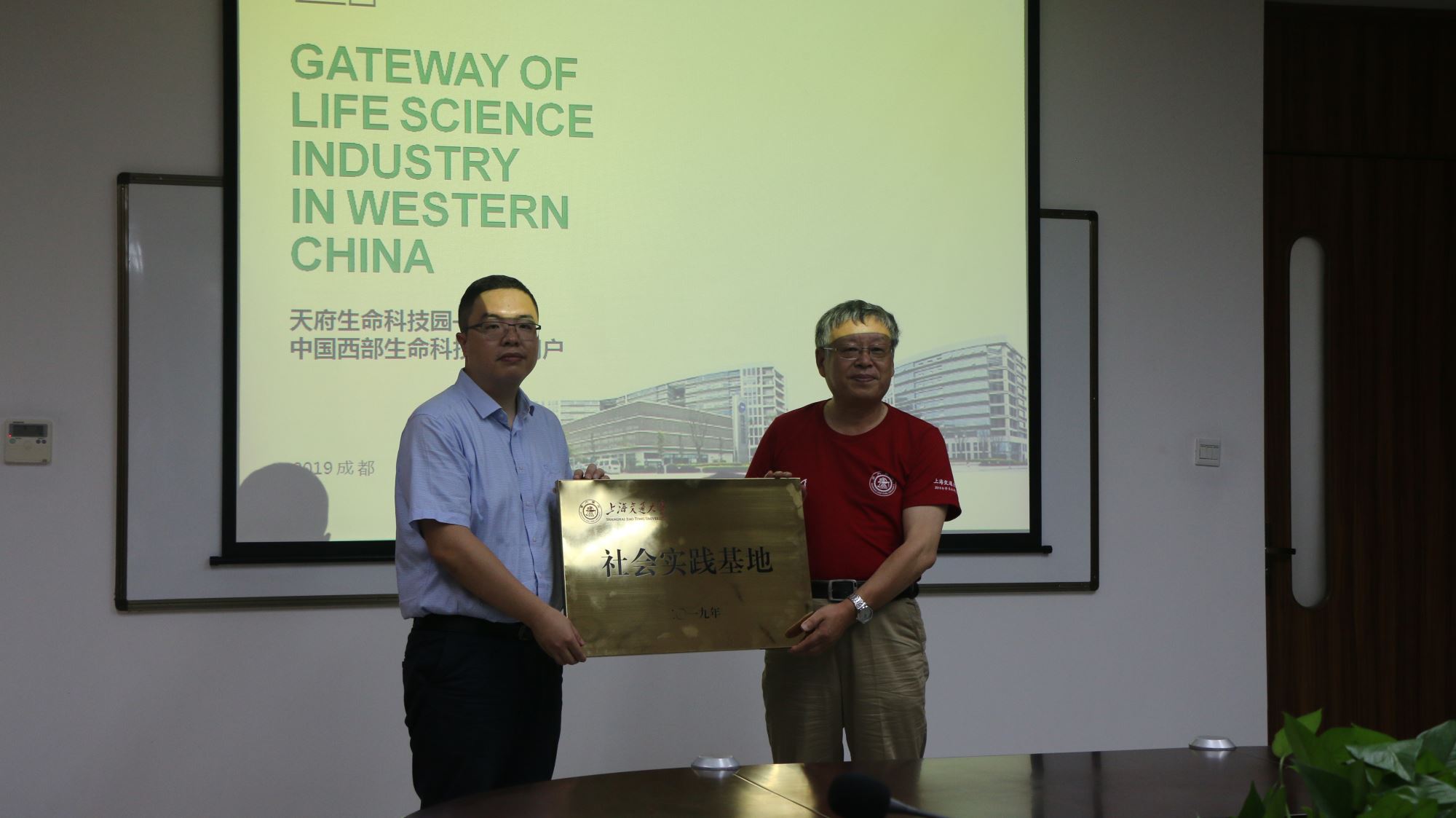 交流结束后,437必赢国际官方网站和天府生命科技园进行了437必赢国际官方网站“社会实践基地”的授牌仪式,为双方建立进一步的“校-企”、“校-园”合作奠定了良好的基础。双方协商设立社会实践基地,为交大学子假期社会实践、行业实习、就业实践提供资源渠道,并在此基础上推进与园区企业的科研合作,探索科研成果的企业转化以及企业科研问题的解决。