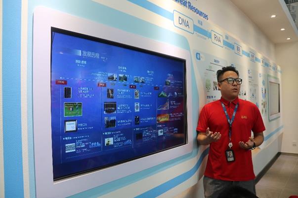 实践团首先参观了创新成果展示交易馆,其中陈列了众多企业机构的科创成果,从转基因作物、高产小米到经过改良的生物医药制品,还有可用于生物医学的精密仪器,如基因测序仪、胶囊式内窥镜等,以及多种专业领域相融合后的科学结晶。