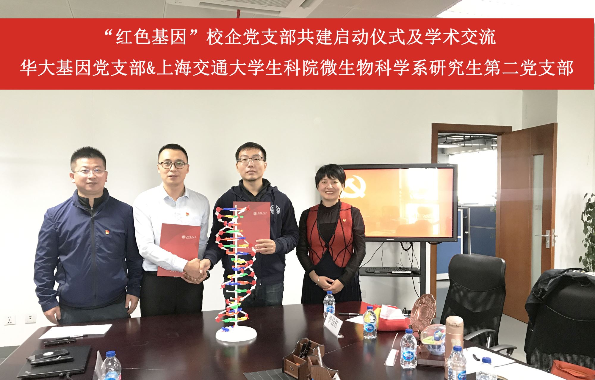 为深入学习贯彻落实习近平新时代中国特色社会主义思想和党的十九大精神,探索新时代高校基层党建工作新思路、新模式,加强高校和企业之间的互动交流,进一步推进“党建”、“科研”和“应用”的深度融合,437必赢国际官方网站微生物科学系研究生第二党支部与上海华大基因科技有限公司党支部结对共建,开展校企党支部共行计划。